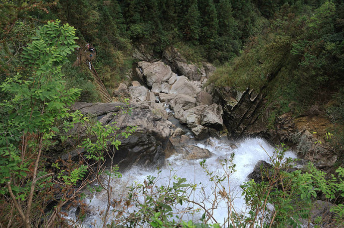 走到雪花漈顶端的横桥向下俯视去,才发现瀑布的源头原来是这样的纤细,都是因为这70米的落差才形成了这样的磅礴气势,也许我的人生在经历一次大起大落之后也会产生巨大的变化,只是不晓得倘若真的降临在我身上自己又能不能经受的住呢。