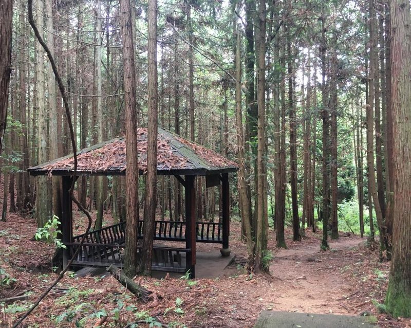 参天大树之间还座有一个小亭,可以供游玩的旅客坐下休息片刻。