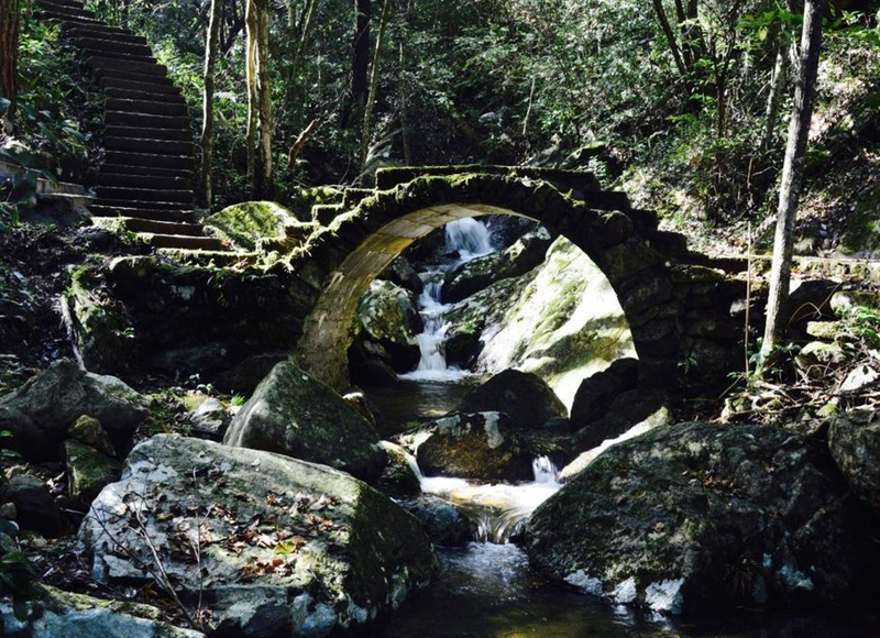 还有久远的石拱桥,已然长满了苔藓,只有经常走过的地方光滑的露出台阶表面。经历了长时间的风雨洗礼,看似已经和这森林融为了一体。