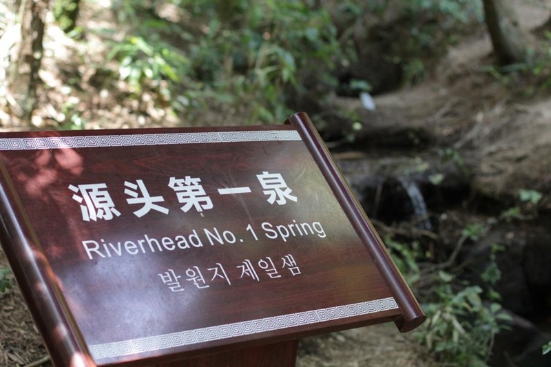 一块有中,英,韩文字的“源头第一泉”提示牌立在这里。