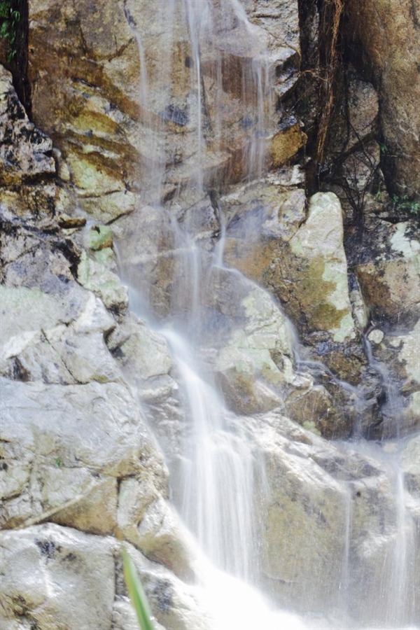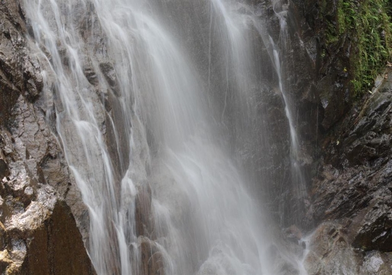 整个大峡谷呗群山包围着,悬崖上,水流飞泻而下,奔流不息,水流击打在峭壁上形成万丝千缕,走近还会有几滴水滴落在脸上,清爽透凉。