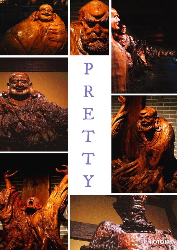 这里也是根雕艺术的天堂,要说这里和刚才的醉根天宫博物馆有何不同的,可能就在一个趣字上面吧,醉根天宫博物馆里的根雕个个气势磅礴,高达十几米,而这里都是一些半人高的根雕,造型有趣,引人发笑,让人放飞心情。陈列的是徐谷青大师各时期根雕艺术的代表作,以及他的弟子们的获奖作品,这些作品风格独特,选材奇绝,创作精巧,而且题材广,立意深刻,渗透着强大的生命力和回归自然的天趣美和强烈的历史使命感。下面让我们继续来欣赏一些根雕的美照吧~