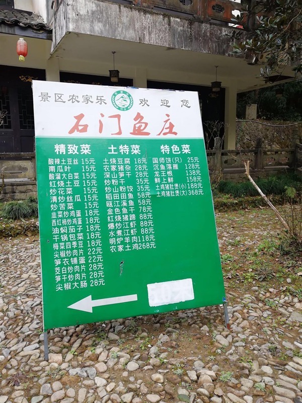 亭子往里走,便有家农家乐,价格合理,以下图片供游客参考。菜品挺丰富,虽然没去吃过,味道估计不错。里面的阿姨也比较热情的招揽客人。