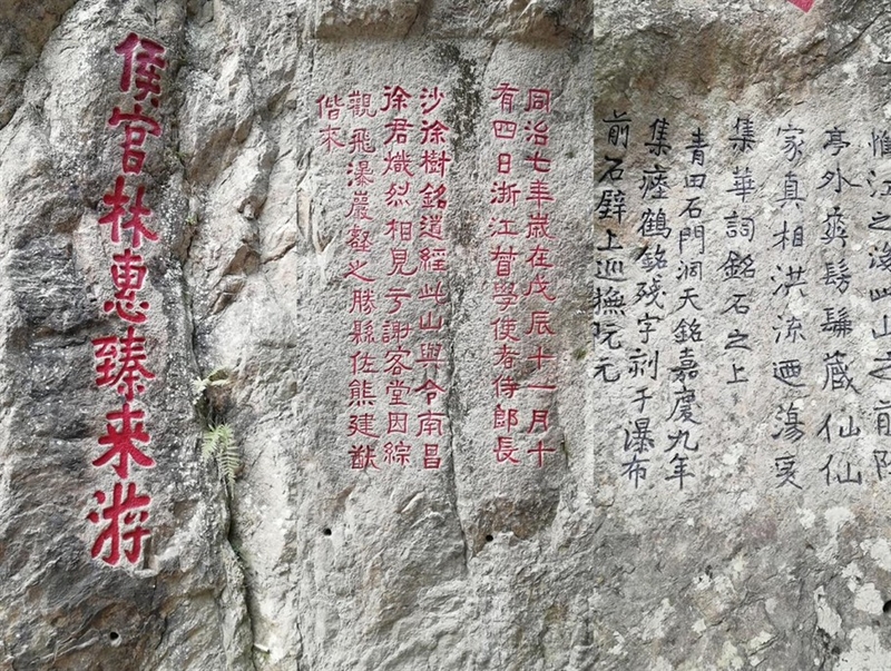 想象着清真禅寺修缮后模样,向此次计划的第二个景点“石门洞”出发。青田石门洞位于青田县城西北35公里的瓯洒右岸,依山傍水,景色瑰丽,素来与雁荡、天台、仙都齐名为“括苍四胜”,是浙江省级风景名胜区之一。横过石门渡,那龙、虎两峰愉似两道石屏。“石门洞”由此而得名。据了解,,郭沫若先生在古稀之年还不远万里来此一游,并写下了动人的诗篇:“横过石门渡,刘基尚有祠。垂天飞瀑布,凉意喜催诗。”郭老的诗章,使壮美的石门没天增添了无比的光辉,也让我对此行倍感向往。