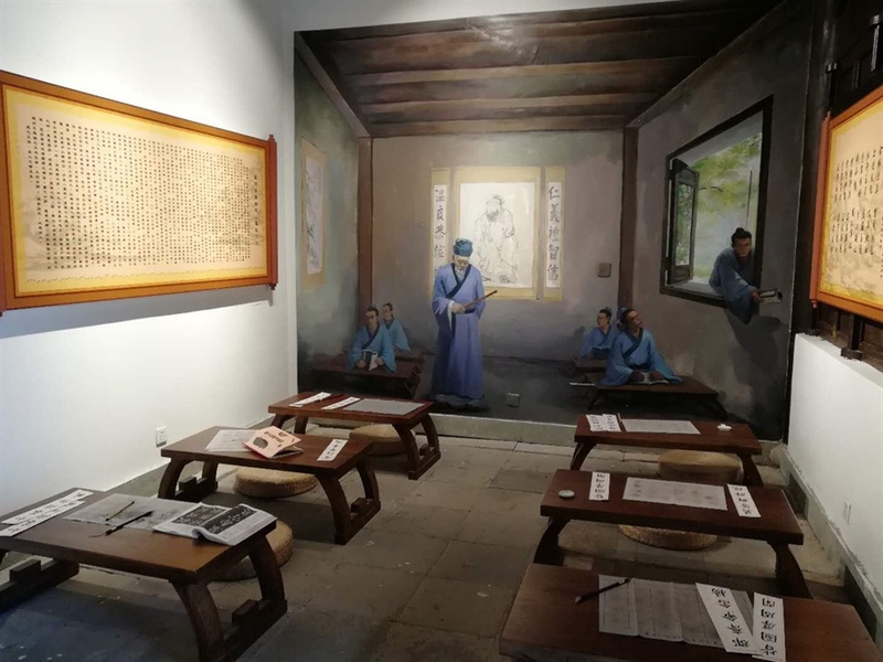 这个房间一进去边设置了电子感应系统,踏入房间的那一刻就能听到朗朗的读书声,仿佛真的置身于古代的书苑,感受古代的书香墨画。