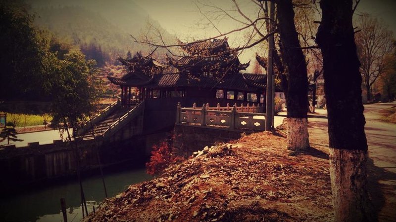 小镇入口的心墙,白墙灰瓦,由左右两面高低不同的墙组成,两边各是半心,就像两个近在咫尺的人在努力的靠近,想紧紧的拥抱在一起。看着中间火红的红心,感觉下一秒这颗心就要从心墙里跳出来一般。心墙两侧沿着河道边上由远到近皆种上了桃花树,阳春三月,桃花漫天。像极了三生三世十里桃林。那么在这四海八荒中我是否也能执一人之手,共赏这桃林春色。透过几根桃枝看过去,有一竹木制廊桥横跨在溪流之上,廊桥是新建的还保持着纯色的模样,未经雕琢却也别有一番风味。东坑镇除了是有名的爱情小镇,也是廊桥之乡,这里廊桥众多。最让我印象深刻的便是彩虹桥式木构廊屋桥。以梁木穿插别压形成拱桥,不用铆钉完全靠自身强度支撑起来。曾盛行于北宋年间,在世界桥梁史上绝无仅有,有绝高的美学价值。