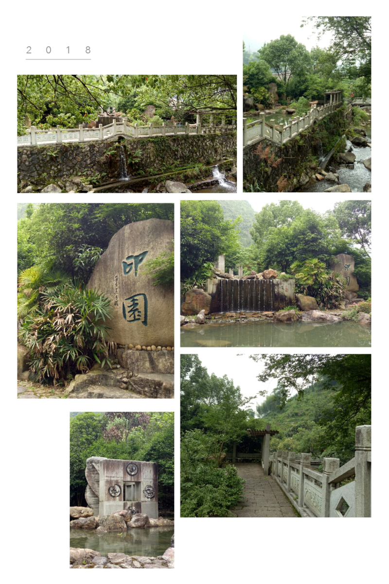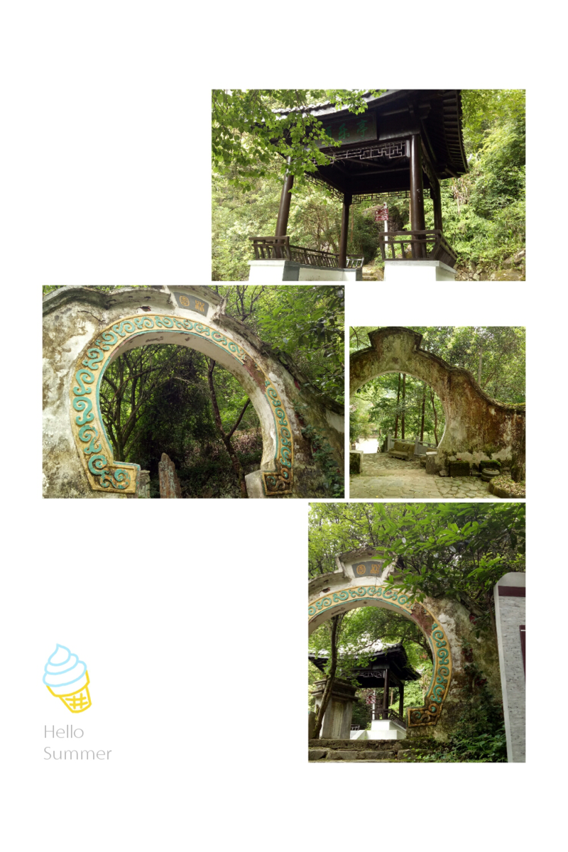 瀑布下的山林里藏着一座梅园,虽然早已不是梅花绽放的季节,但梅园的圆形门洞,配上墙体上斑驳的青苔痕迹,显得格外秀气。此时透过圆形门洞似乎看到一位小家碧玉的美人儿,一把油纸伞落在肩上,掩在树下就那样静静的站着,突然回眸给了我一个甜甜的微笑。梅园边上有一座小石桥,石桥下是潺潺的溪水,这景色真有半纸烟雾掩小桥流水负古道西风之感了。