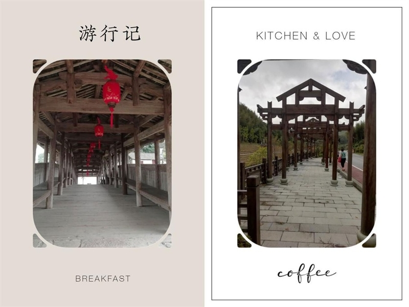 一路向前飞奔,转过头,已经消失了母亲的踪迹、有几处破旧的木质廊桥,桥前的石碑上已是长满青苔。走进廊桥,除了能感受到它古旧所带来的年代感。还能闻到历史的腐朽。那种陈年老屋,许久未见阳光的霉味。那种既熟悉又久远的味道。这种古旧的廊桥分为上桥和下桥,并在一起为姊妹双桥。他们造型古朴典雅,上桥又叫观音阁桥,下桥叫青安桥上下两桥相距三百米,上桥在村头,下桥在村尾。一南一北,遥遥相望,相应成趣,故名姊妹双桥。