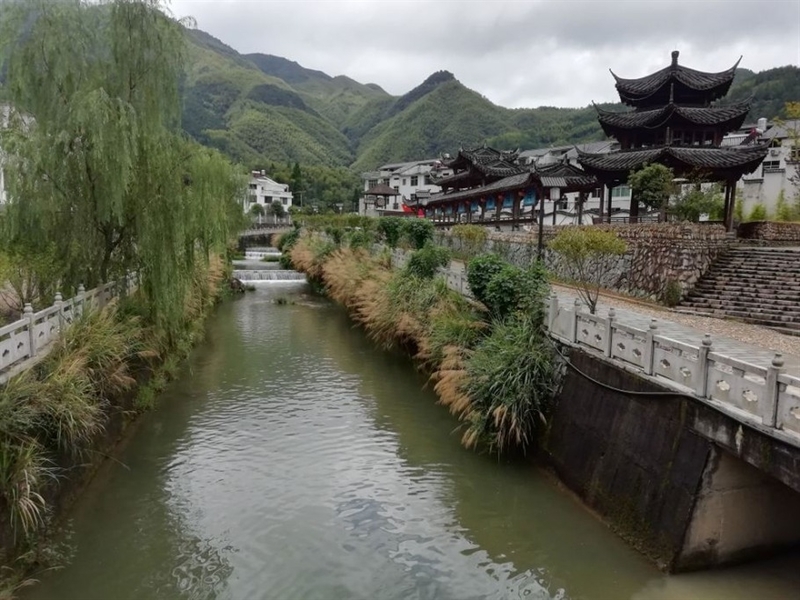 走在小镇的走道上,一路上桂花香扑面而来。所到之处都可以闻到。仔细一看道路两盘都种满了桂花树。桂花醇厚清新的香味让我神往,靠近河边,脚下便是淙淙的流水。晚上刚下过雨。河里的水变的有些湍急卷着白色的浪花漫过绿色的水草滚过几块聚石,哗哗的仿佛像吟唱着一首歌奔流向前。一路上随处可见的便是各种各样的廊桥,这里是廊桥之乡、由远到近的民居慢慢的出现在眼前。
