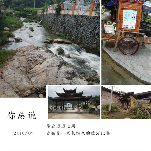沿着小道顺着来时的路往回走,穿过心寨,慢慢的马坑村渐渐离开我的视线,过了桥便是爱情小镇,我在小镇里的小卖部门前等起了车,那天是个星期天,周围等车的学生很多。看着他们年轻稚嫩的模样,我也好想在背起书包回到课堂。小的时候总想长大,长大了却想回到从前。人的一生总是在错过。如果有一天,倘若真有一个对的人出现,我一定不会在错过。