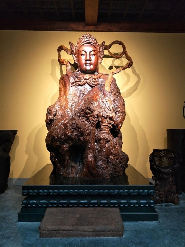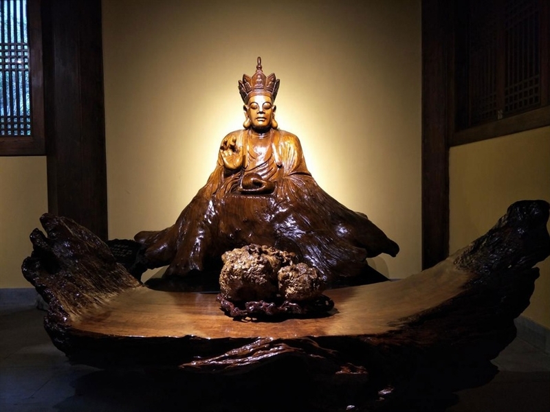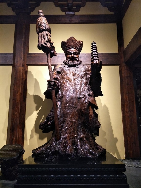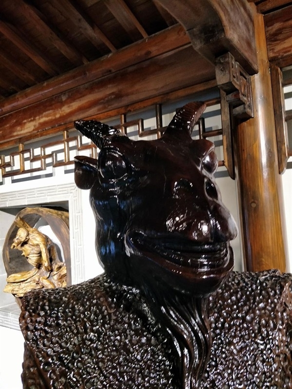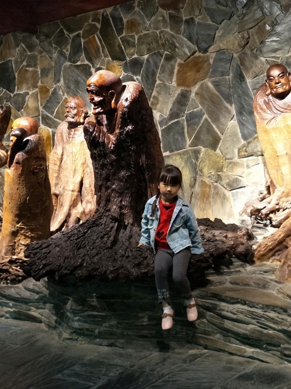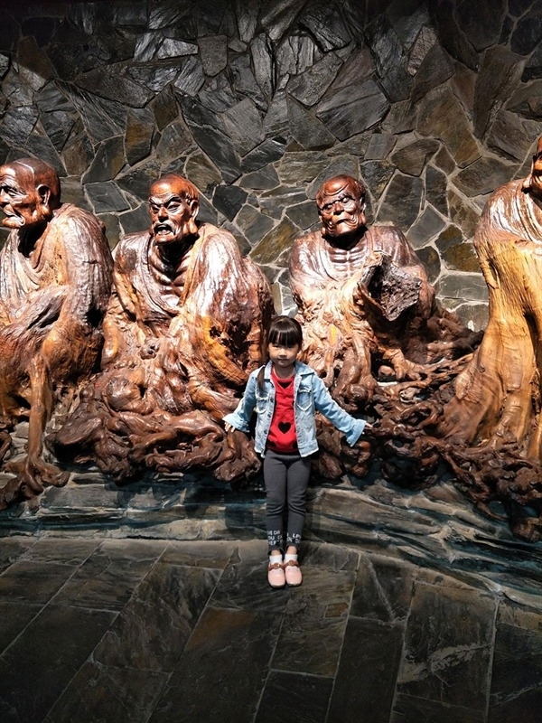 紧接着我来到了未来佛殿,我虽然不信佛教,但是我觉得无论何时,对待这些都要怀有敬畏之情。这里摆放的都是各式各样的佛像。前面带团的导游说:开化根雕的历史可上溯到唐武德四年,杜伏威奉旨降伏徽州汪华,打通了浙西通往安徽的必经之路——开化古驿道,开化成为浙、皖、赣三省经济文化交流的中间站;南宋建都临安后,当地的木材和土特产沿钱江源头马。从政义坊望楼残留的木结构可以看出开化的木雕已经达到较高的艺术水准。