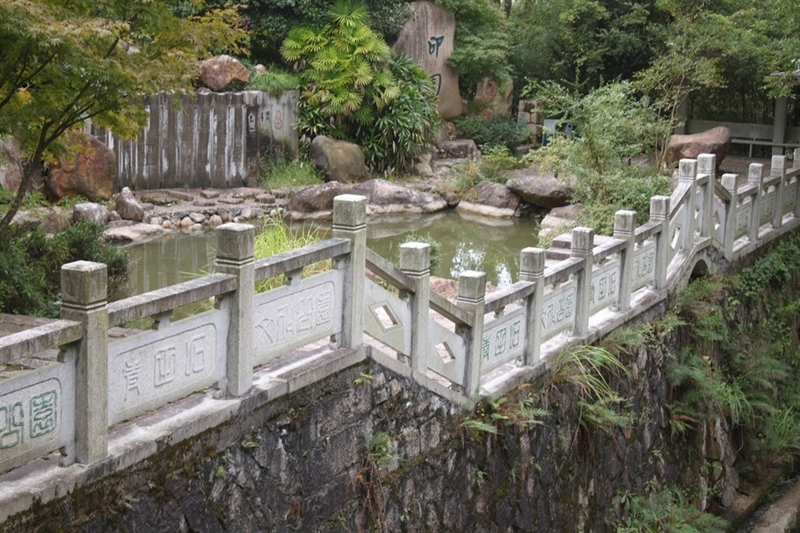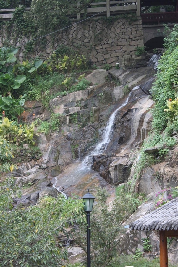 走进太鹤山公园的大门,沿着石阶一步步的往上走,不远之处,似乎有更美丽的风景等待着去一探究竟。依旧是个不露痕迹的阴天,我独自一人慢慢的踱步向上。路过一座漆成橘色的亭子。亭子之后,是一处小瀑布,水从高处落下溅起点点水花。瀑布是从石桥底下穿过,顺流直下,扬长而去。坐在亭子边上倒是有几分冷冽。