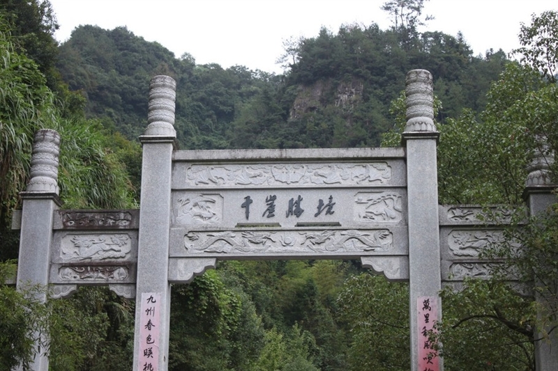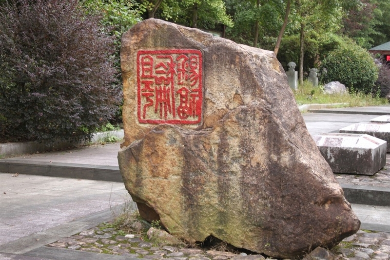 从刻着千丝腾境的石牌坊进入便算的是真正的到了千丝岩景区。进门便见一块大石头上盖着一个很大的红章,鲜艳夺目的红。