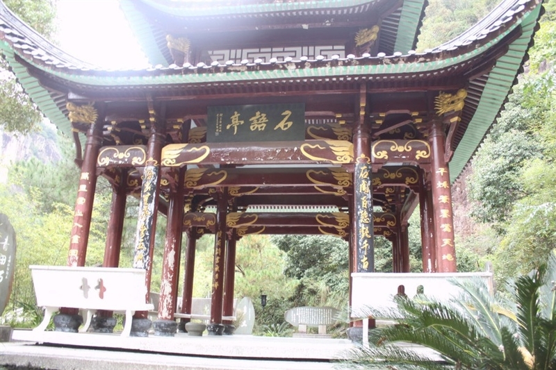 走了不知道多久便到了石语亭,相比之前的几座亭子用色上更为大胆夸张。传闻坐在这个亭子里能听到石头在说话。不远处便有一块石碑,上刻东方碑林几个大字。
