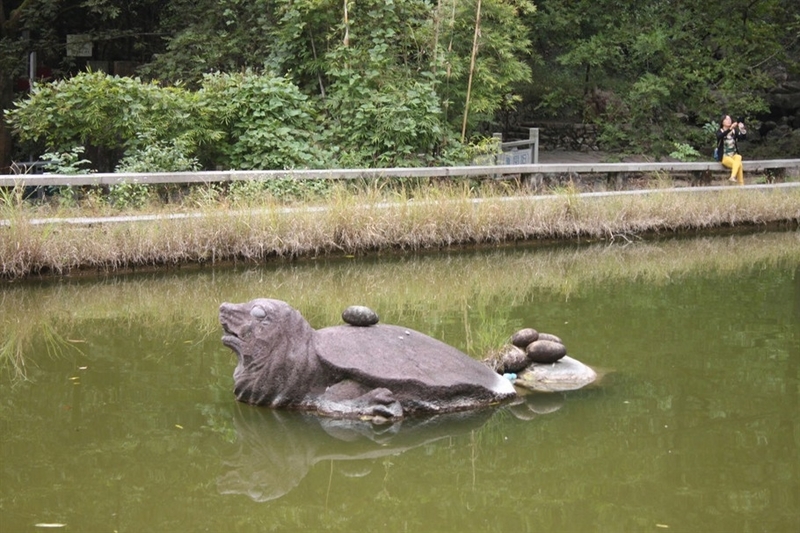 又到了一处石桥,桥底下是一湾绿色的池水。池塘中央有一个石鳌,仰头向天,似乎在看着远处,它的背上有一颗椭圆形的蛋,这大概就是它的蛋了。岸边是一簇簇枯黄的野草。在桥的末端,一个男孩提着他的单反相机,背着一个硕大的旅行背包蹲在地上正在取景。似乎也是跟我同一类人,总喜欢自己背上一个双肩背包,一个人,旅行。似乎没什么不好,鲜少觉得孤寂,却有一份怡然自得的乐趣。人还是活的让自己舒服不是吗,不去迎合,不去迁就,不去委屈。或许才是我们该有的样子。