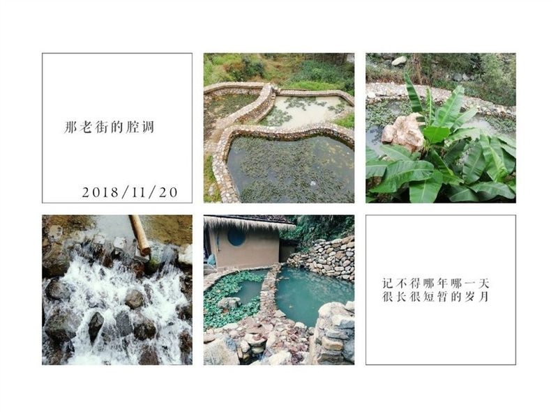 这里的围栏扶手都是原漆树干,未经雕琢的石板路,还有原始气息的茅草木屋。所有的一切都是原生态的,它们未经雕琢的模样却也诠释了自然的一种美。那种美让人倍感亲切和舒心。沿着原石铺成的石板路漫步前行,石块围成的水塘中一洼洼的浮萍漂浮在水面上,浮萍底下是一枚枚小小的锦鲤在水间穿梭嬉戏。还有那砌在石堆里的芭蕉绿的喜人。忽而脑子里想起一句诗词,流光容易把人抛,红了樱桃,绿了芭蕉。