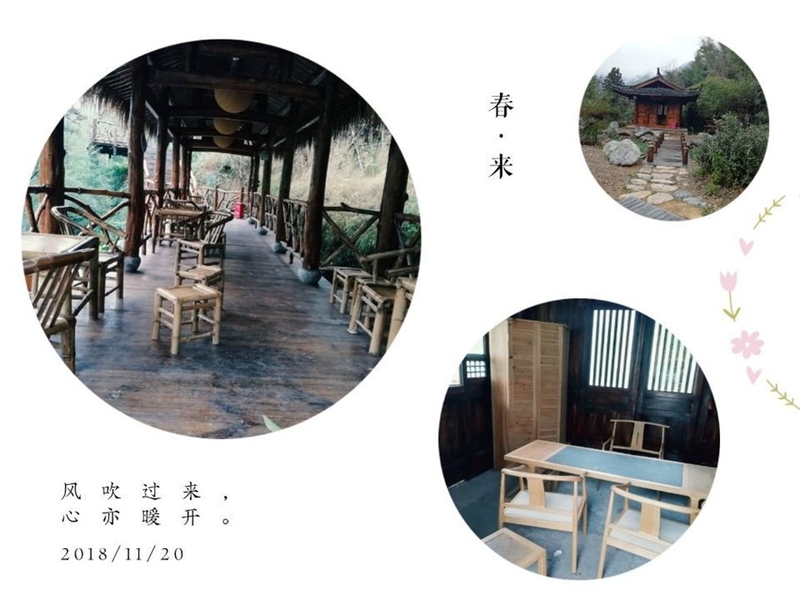 木屋里建筑最为壮观的便是惠明茶园,整个木屋由几十只木柱跟横梁组成。头顶上的线球灯也是一大特色。若是夏季,避暑喝茶赏花,坐在观赏风景这里到不时为一个好去处。