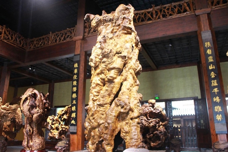 博物馆内陈设有徐谷青大师及其弟子的大型根艺精品20多件,其中包括镇馆之宝“根魂”。“根魂”高7.5米,重达8吨,原为隐居深山野岭的千年榉木根,徐谷青大师几经波折,开山修路,耗时十余载才得偿夙愿,将其运出,为此人称“根疯子”。