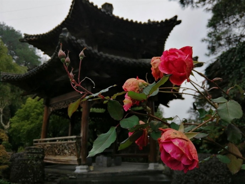 拾阶而上,来到了最上方的后花园——醉景园,这是一座具有汉唐时期江南园林风格的花园,假山、怪石、湖泊、盆景、牌坊、仿若置身苏州园林,步步是景,处处含情。园中湖泊还有几只鸳鸯,正戏水。得名“空中花园”。