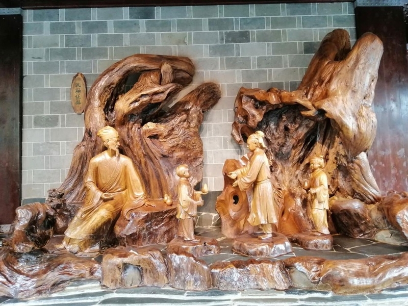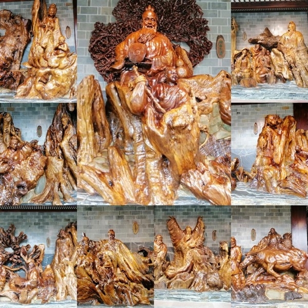 另有根雕艺品组成表现的成语故事、民俗故事、典故轶事,令人目不暇接。