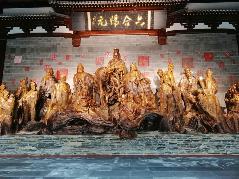 博物馆以上下五千年华夏文明为创作主题,其中的“道行天下”馆,巨型根艺“老子”造像,还有以“万世师表”为主题的儒家思想大型根雕系列以及以《道德经》为主题的八十一组根雕群,气势恢宏,令人叹为观止。