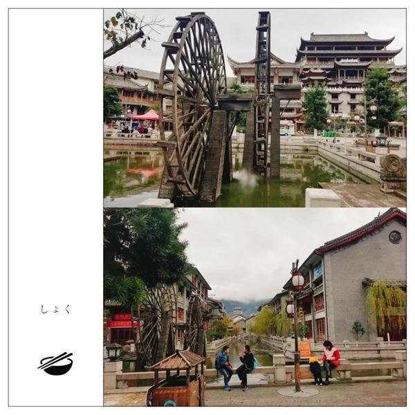 古镇右侧有条河道,蜿蜒曲折的向前,你看不见它的尽头,只知道它贯穿了整个古镇。河内的双轮水车在缓缓的转动着,伴随着它的转动,从底下却升腾起一阵白雾。浓郁的白雾随着风飘散开来直至消失在空中。我看的入神,倒觉得有几分仙气。一群小孩子坐在小河边上嬉笑打闹,却不见河里的锦鲤。许是冬日的严寒,锦鲤也躲在了河道深处不敢在出来。