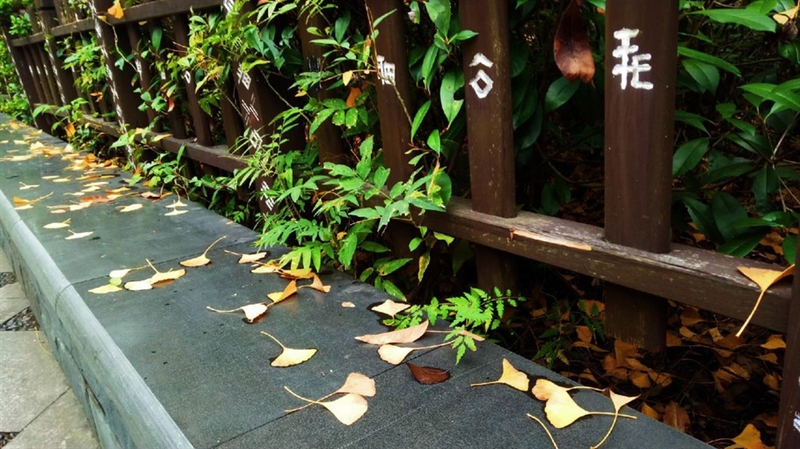 虽然已是深冬,但依然有不怕冷的花儿开在墙角默默地绽放,依旧是一副生机盎然的模样。但是像银杏这样的树就不一样了,经过一年的生长,此时已经一副疲倦的样子,满头的叶子散落便哪里都是一片金黄。就这样走着,不知不觉便到了景宁畲族博物馆门前。