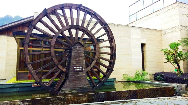 然后回到此行的重点——景宁畲族博物馆,博物馆外一个大的木质水车站在水池里,像是这里的最特别的守卫一般。博物馆主要按照畲族人民的衣食住行、娱乐活动、起源等方向对畲族进行介绍。