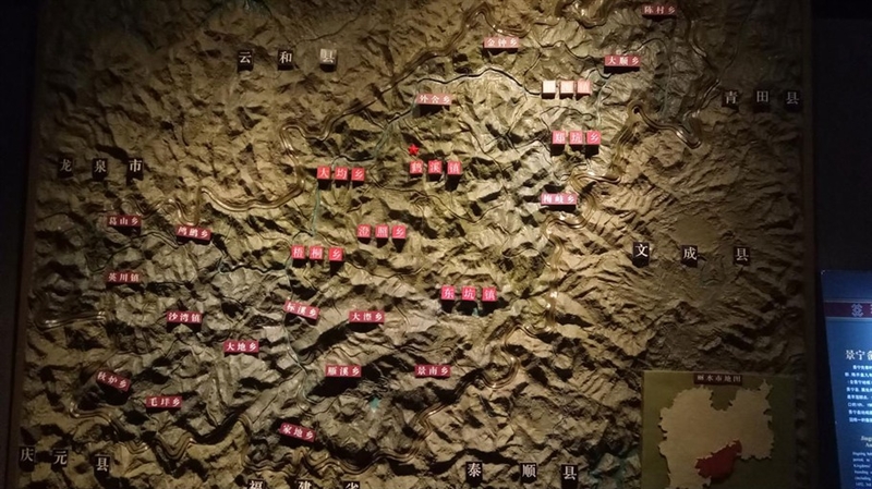 另外博物馆里还用三维地图的方式展现景宁地区畲族的分布,这里也可以看出,景宁真的全部都是高山和丘陵,几乎没有平坦的地方,这足以证明畲族自称“山哈”的原因了。