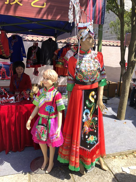 看完表演在畲乡之窗的马路边上等了一会车,坐着大巴我们又回到了县城。我们的下一站便是凤凰古镇。坐在拥挤的公交车上不一会儿便到了凤凰古镇。往常的三月三凤凰古镇正门口的两侧摆满了地方小吃,这次却没有,小吃都被安排在角落之中,沿着凤凰古镇往里走,道路两旁都是由简易帐篷搭建而成,里面摆满了各种小商品,应有尽有,有民族特色小吃,手工艺品,玩偶,干花 ,盆栽,娃娃等等几乎面面俱到。整条商业街一直延伸进去,让人应接不暇。来来往往的人群中不乏有穿着汉服的姐姐,小哥哥,他们也成为了其中最为靓丽的一道风景线,在这个有着明清建筑风格的小镇中穿行特别的有韵味。