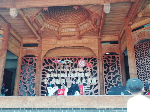 遇街楼前摆满座椅,远处搭建的台子上写着斗茶大会,无论是座椅上还是台上都空无一人,想必斗茶大会已经结束。我们只能跟随着如潮水般的人群往前涌,走过遇街楼站在古戏台前,只听得一阵锣鼓喧天的嘈杂声。只听得其声,未闻其人。啰声响了很久,主演才匆忙上场。这便是菇民戏,又称为英川乱弹,或者二都戏。英川乱弹主要分布在英川镇区域,二都戏主要分布在庆元县与景宁县相邻的庆元二都,被视为省级非物质文化遗传项目,从戏曲之中你所能感受到的是饱含的深刻的文化底蕴。