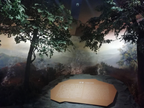从展馆入口进入,瞬间感觉凉爽,整个馆内模拟的是密林深处,昏黄的灯光照射下来仿佛把我带到了当时的场景。整个展厅主要展览的是畲族民居,以及建筑元素,土墙青瓦。整个展厅分为序厅,起源与迁徙,环境与聚居,生产与交换,饮食与服饰,社会与风习,信仰与崇拜,文化与艺术八个单元。