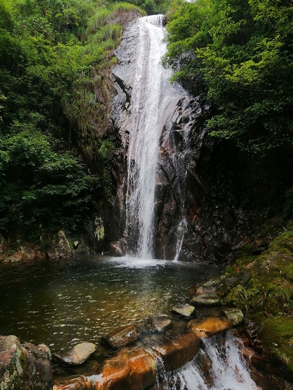 走的有点疲惫时正好遇到古田瀑布,在瀑布旁稍作休息,我们继续往前走。绕过几个弯,就真的到了古田山的山脚下,真正开始我们的爬山之路。