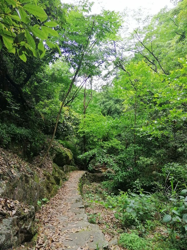因着前段时间的连绵阴雨,道路上都被掉落的树叶覆盖上厚厚的一层。似乎在我们来之前,未有人到过此处,想到在林中深处是否会出现桃花源一般的景致,我们怀着一探究竟的心情往前。
