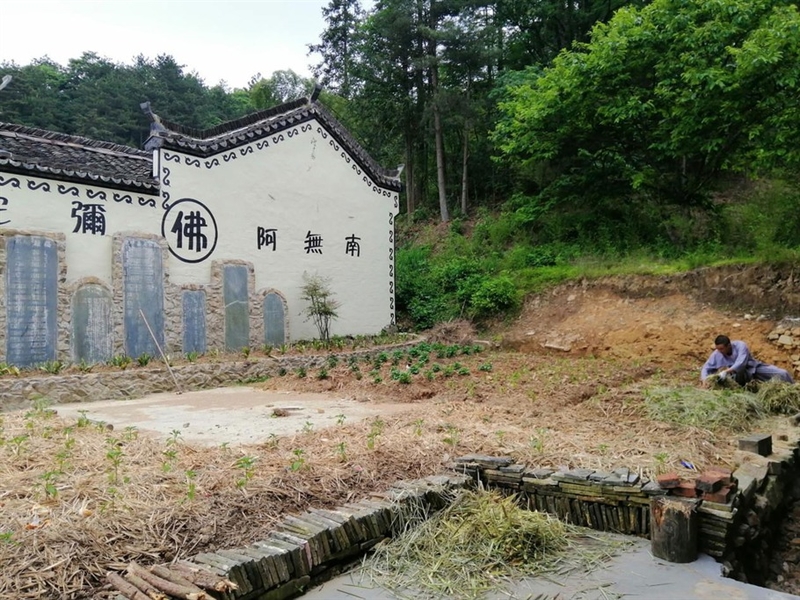 从山脚一路拾阶而上,忽行至一处豁然开朗之处。豁然开朗往前走,原来是到了古田庙。但此处开阔的并不似山顶,更像某座山的山脚下,可要知道我们是爬了好长时间的山才到这里的。
