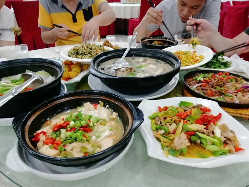 爬完山后,怎能少了美食的慰藉。我们来到了景区的古田山庄,任由厨师长为我们按排菜色。稍等片刻,美食就已上桌,色香味俱全的菜品让人食欲大开,更何况是刚从古田山上下来的我们,早已饥肠辘辘。