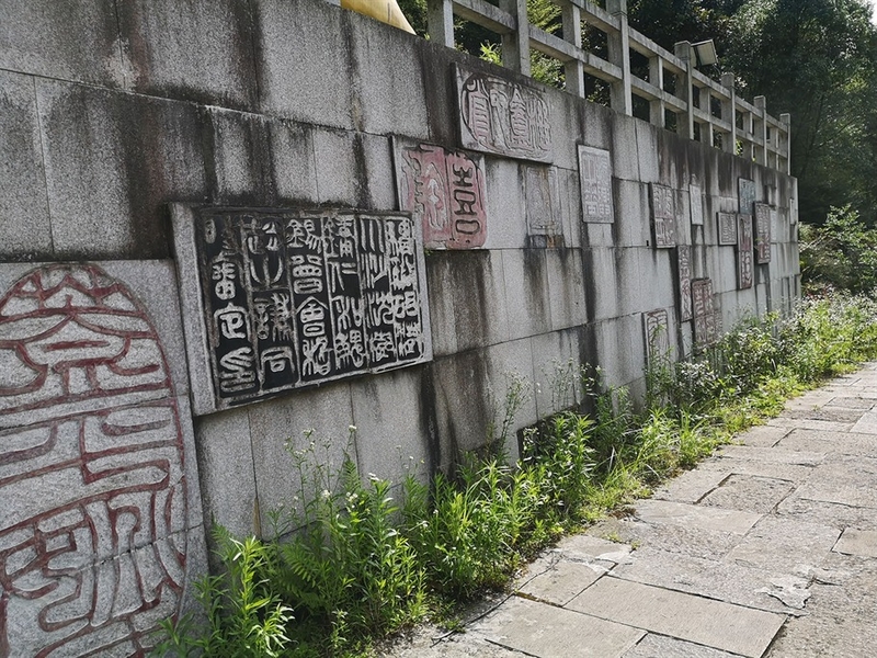 继续前行,映入眼帘的是一座高高大大的牌坊,上书“千崖胜境”四字,一股世外桃源般的气息扑面而来。穿过牌坊,前方百余米处就是售票处,在这之间,是一条“百福大道”,大道上都是各种福字的刻章,看得人眼花缭乱。