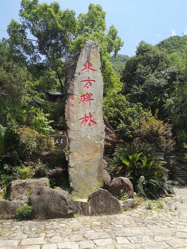 离开“佛手”景点,返身折回大道,前行左转,便是颇具盛名的“东方碑林”了,这里汇聚了众多石碑,大大小小,大字小字,撩人耳目。最外面就是“东方碑林”的高大石碑,顺着小路往里走去,两边是各种字体的碑文,有草书的、有行书的、有楷体的、有小篆的,尽显名家风范,置身其中,欣赏中华文字艺术的美妙,仿佛看到了中华民族文字的演变历史,浓浓的文化气息令人惊叹不已。