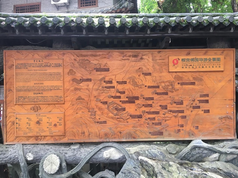 在进入根宫佛国之前,还可以看到一个导游的全景图,全景图上面标注了根博园每一个地方,用手机把这幅地图拍下来,在进入游玩的时候就完全不会迷路了。