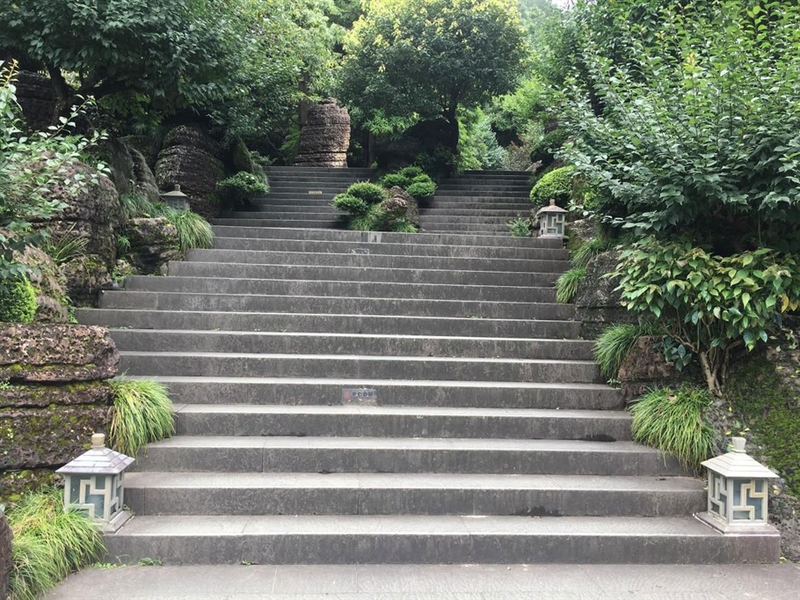 跟博园内的青石板因为下过雨的原因,所以还有一点点雨水的痕迹残留在石阶上面。更博园内的假山,大大小小重叠在一起,始终还,穿插着一些非常罕见的植物和树木,台阶上面还放置了古色古香似的小灯,让我感觉到了浓厚的佛法文化。在根博园中随处可见的就是各式各样的盆栽,但是最吸引我的还是一处巨大的烟灰色似的大盆栽,盆栽中屹立着几棵茂盛的绿植,绿植的叶子是属于圆型比较小巧的那一种,反倒是和这个巨大的花盆形成了对比。