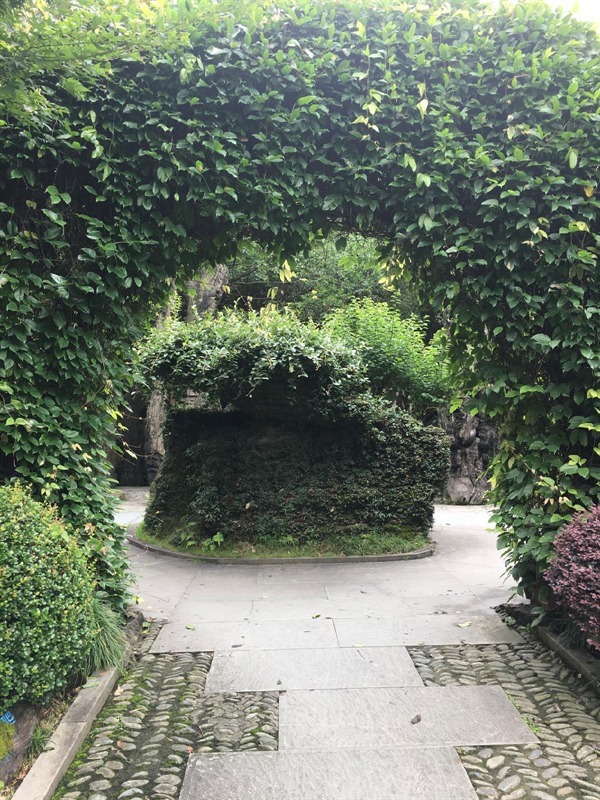 除此之外,最吸引我的还是园中巨大的绿色拱门,这一座绿色拱门是由缠绕的绿植形成的,看样子应该是有很长时间的历史了,在绿色拱门的背后有一座被绿植覆盖的石雕,不知道这座石雕是经过了怎样的时间磨砺,才能呈现出今天这番模样.