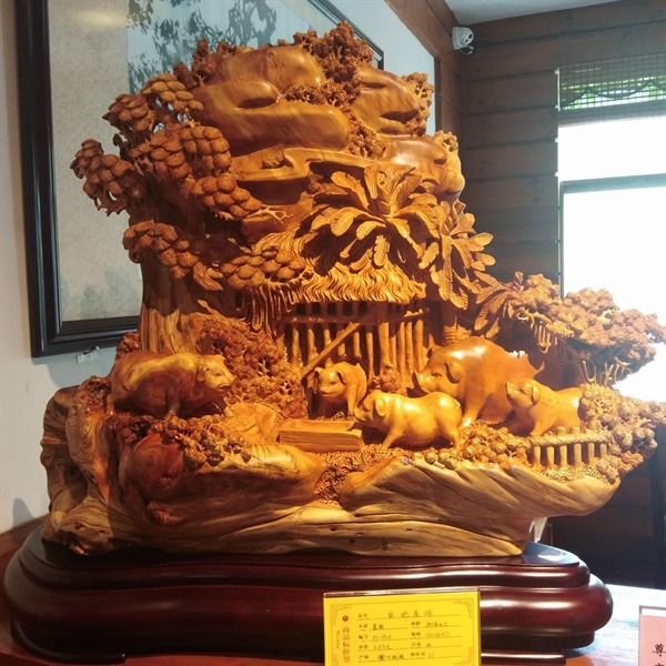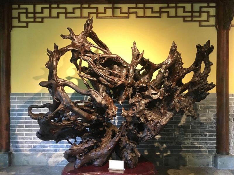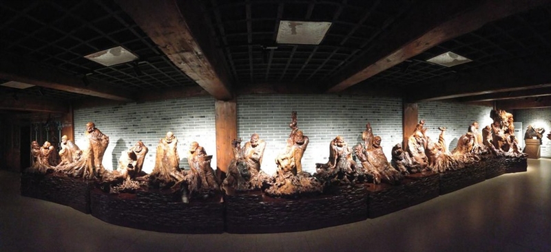在家人的引领之下,我就来到了珍藏着各种各样根雕的博物馆之中。首先映入我眼帘的就是一座巨大的根雕作品,与其说这幅根雕是作者手下的神乎其技,我更觉得这幅根雕像是大自然的鬼斧神工一般,每一个雕刻的细节都令我十分的敬佩雕刻人双手。
