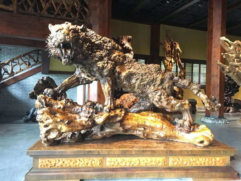 除了生动有趣的雕刻作品之外,最令我我印象深刻的就是木雕的兽类了,尤其是眼神,及其凶狠,仿佛就像是凶猛的野兽被木化了一般,活灵活现。