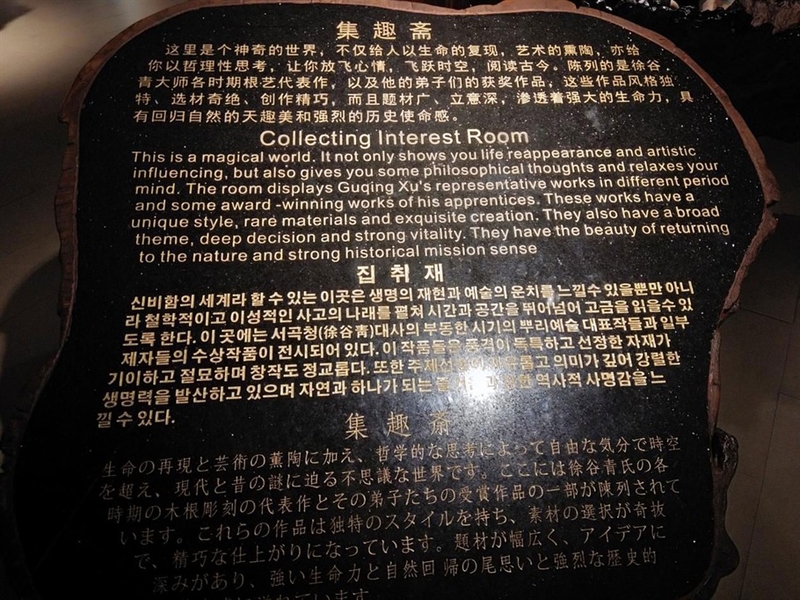 在体会完大雄宝殿的雄伟壮阔之后,我来到了集趣斋,上面解释道,说这是一个非常神奇的地方,不仅可以给人以生命的,艺术的熏陶,而且还可以让我们放松心情,飞越时空,阅读古今。