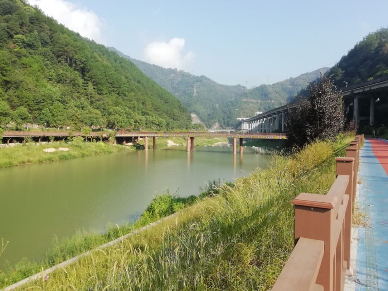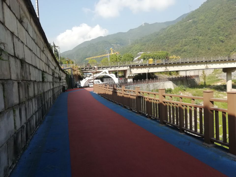 在畲乡溪口的位置有一处绿道,它是由彩色沥青铺设而成,颜色艳丽多姿,依着河道而设,在建设风格上依着原有地貌,融合了畲族文化。给行走在绿道之上或者骑行的人带来了不一样的视觉体验。彩色的沥青路面看起来很有活力,就像年轻的生命般让人热血沸腾,那是青春呀,活力呀,它就像年少时候的我们,朝气蓬勃。