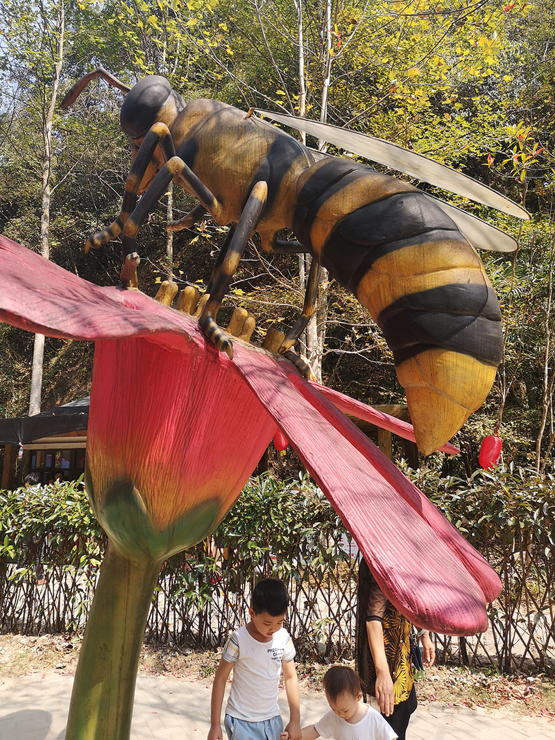 跟着人流往前走,穿过一个小园林,名叫“中华蜂e园”,园中几只巨大的蜜蜂玩具很是吸引人的注意,尤其是小朋友,迫不及待的要与其合影。