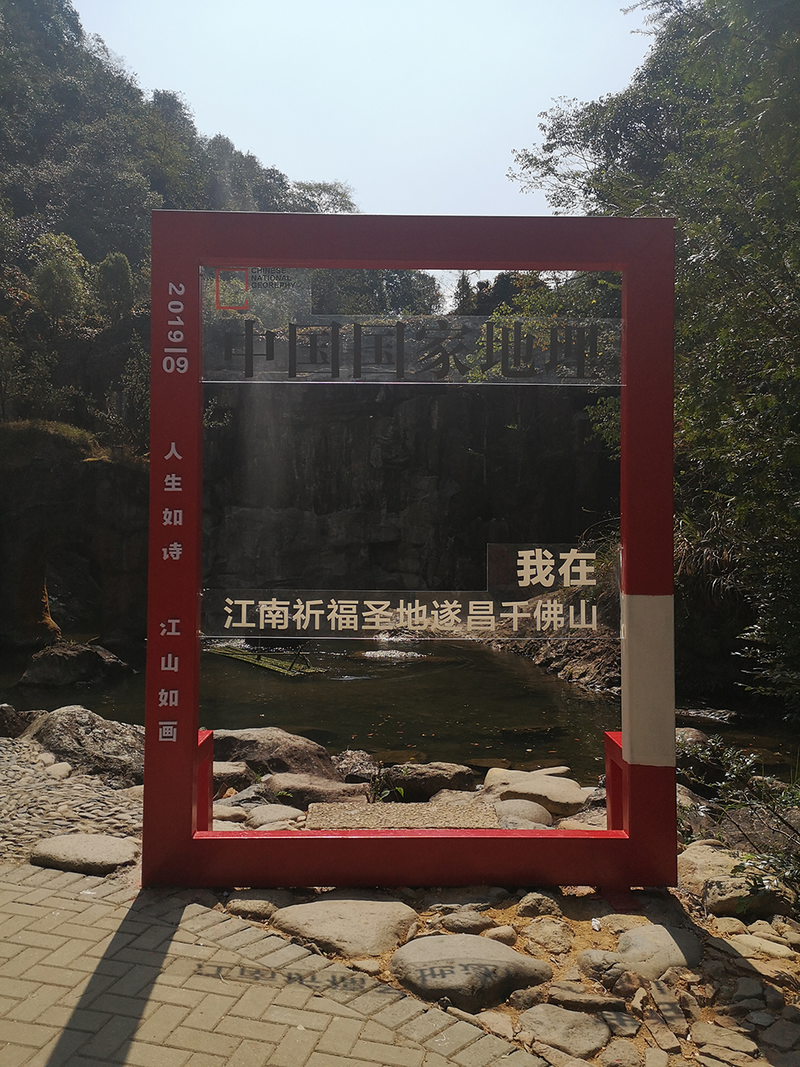 起了个大早,六点不到就动身出发了。国庆高速免费,一大早路上车还不多,这就是早起开车的好处了,不用担心堵车。遂昌地处浙南山区,走长深高速到遂昌下高速即可。与朋友在高速路口碰头,随机便前往今天上午的目的地“千佛山景区”。要说这“千佛山”景区,在遂昌及周边一带还是非常有名气的,每逢初一十五都会有大批的香客进山敬香,尤其是有大的佛事时,场面更是壮观。“千佛山景区”距离县城较远,约有30公里车程,位于石练镇上,由于国庆假期的缘故,等我们到达景区时,停车场早已车满为患,好在运气上佳,居然还是让我们找到了一个停车位。山门外巨石上的“千佛山”三字,也预告着我们即将开启今日的“千佛山”登山之旅了。