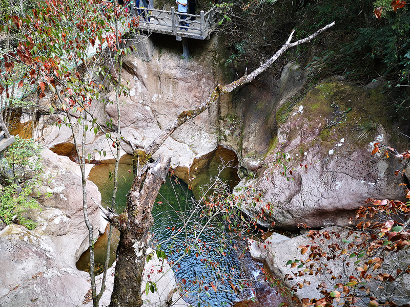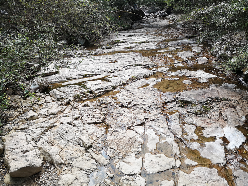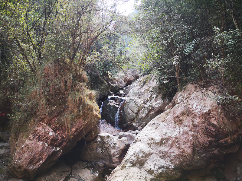 除了这众多知名及不知名的植被外,峡谷中最值得一看的就是奔流不息的溪流了。也不知道经过了多少的年岁,经历了什么样的艰难困苦,才能在这乱石堆冲出这样一条河道,造就了“千佛山景区”峡谷中河道多姿的风采,时而蜿蜒,时而平直,时而奔腾,时而静谧,时而穿林而过,时而又坠崖成瀑。河道中的石头也是千姿百态,有的被冲刷成成片整洁的河滩,有的被冲刷成一块又一块的巨石,还有那一个个尽显大自然鬼斧神工的水潭,记录着这座峡谷年复一年的雨季、旱季,每一个春夏秋冬的历史。