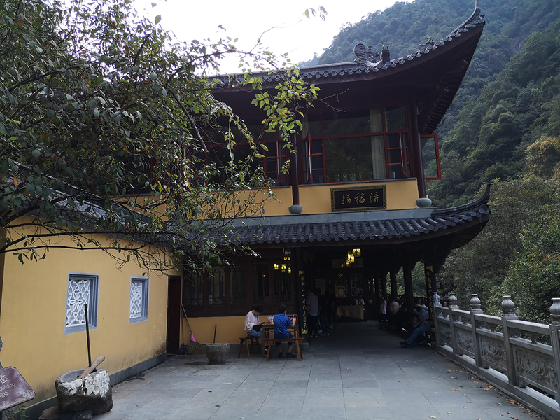 山路漫长,游人爬累了难免肚中饥饿,景区早就考虑到了这一点,在半山腰修建了一处“德福楼”,里面提供各种素食餐点,价格也只是比山下稍贵,想想这些食物都是工人辛辛苦苦用扁担挑上山的,也就觉得物有所值了。