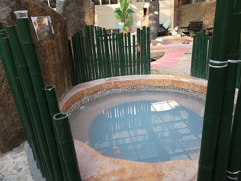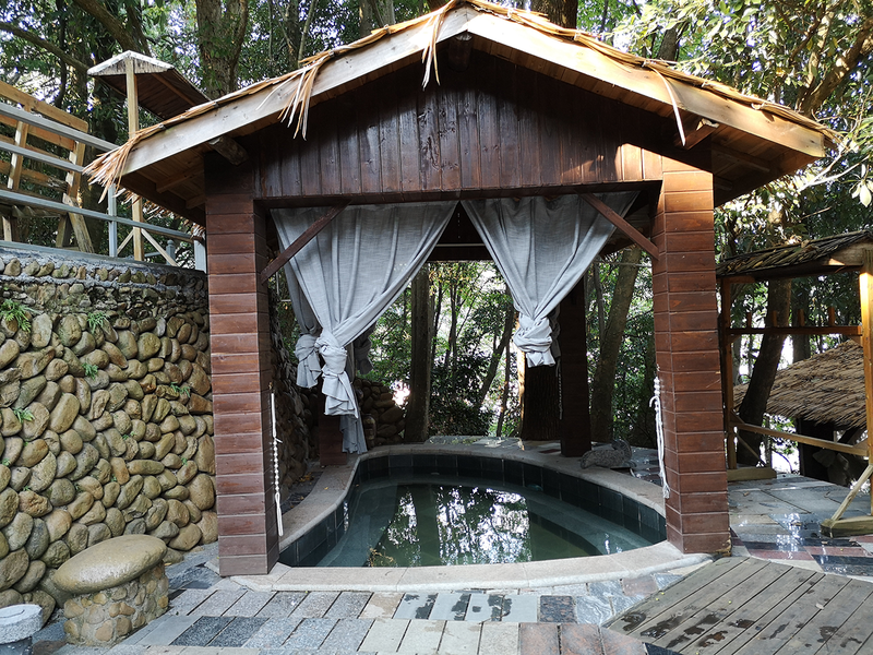 当然了,光是一个室内温泉是无法满足现代游客挑剔的需求的,这里还有沿山而建的室外温泉池哦,顺着山势,你会发现每隔几个台阶就会有一处小温泉池,每一个温泉池都造型各异,池子旁边还有供休息用的亭子和躺椅,想想炎热夏季的傍晚,舒舒服服的洗一个温泉浴,然后躺在躺椅上,吹着凉凉的山风,闭上眼睛美美的休息一会,一天的疲惫都随之消失,这是一种多么美妙的享受啊。